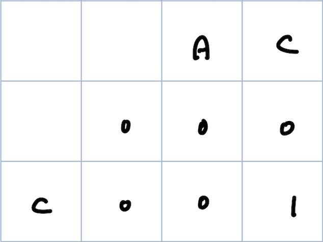 우린 가장 긴 부분 수열을 찾기 때문에 이미 C와 같은 순간 그 뒤에는 모두 일치하지 않아도 답은 1이 되기때문이다.