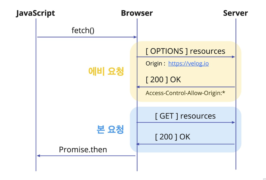 1. OPTIONS 메서드를 통해 다른 도메인의 리소스에 요청이 가능한지 확인